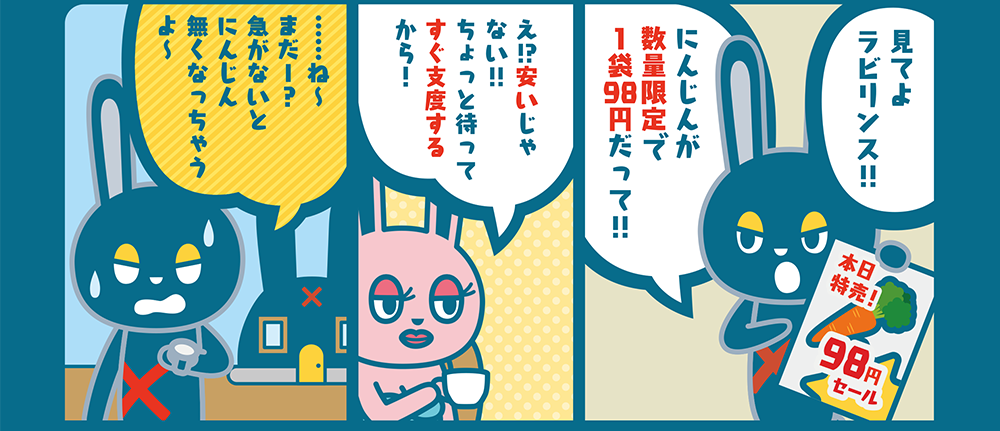 時代はキャッシュレス! ということで、こしょウサギもついにカードをゲット! なんだって買えると大喜びですが……。
