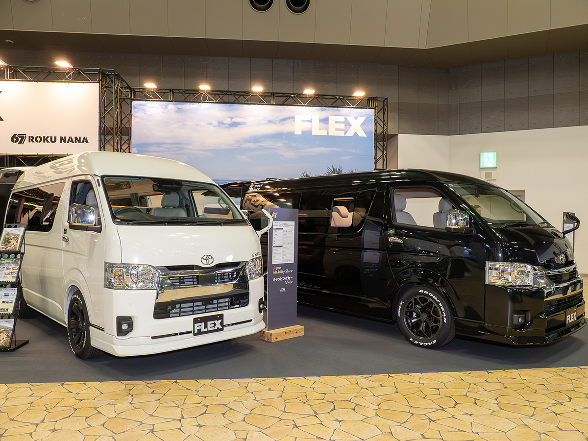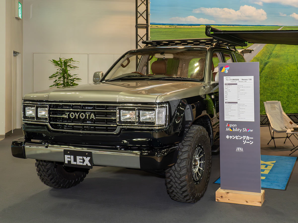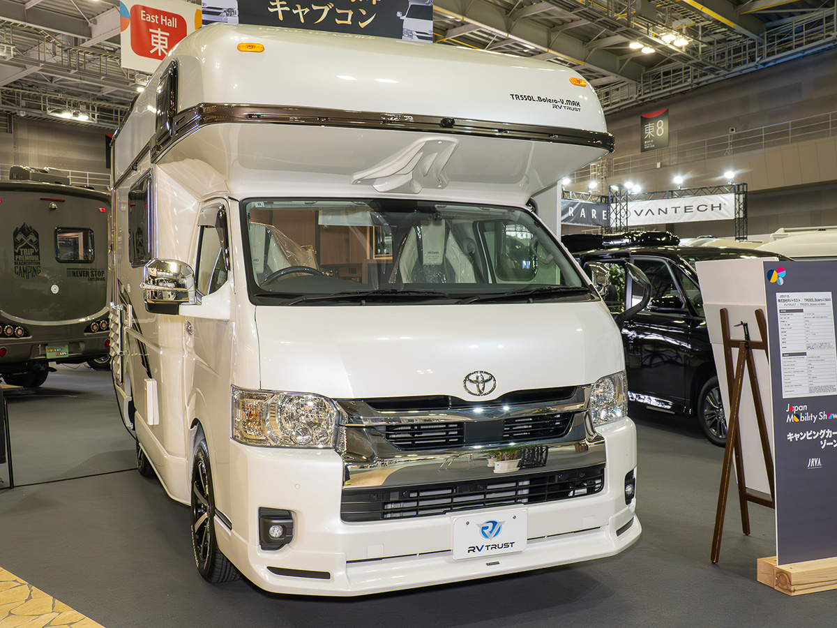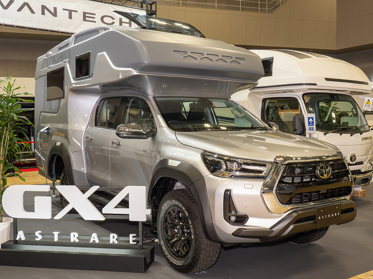 「JAPAN MOBILITY SHOW」には、キャンピングカーゾーンも用意されています。ここでは、ハイエースやランドクルーザーシリーズ、ハイラックス、ヴォクシーなど、トヨタ車をベースにしたキャンピングカーが多数展示されていました。