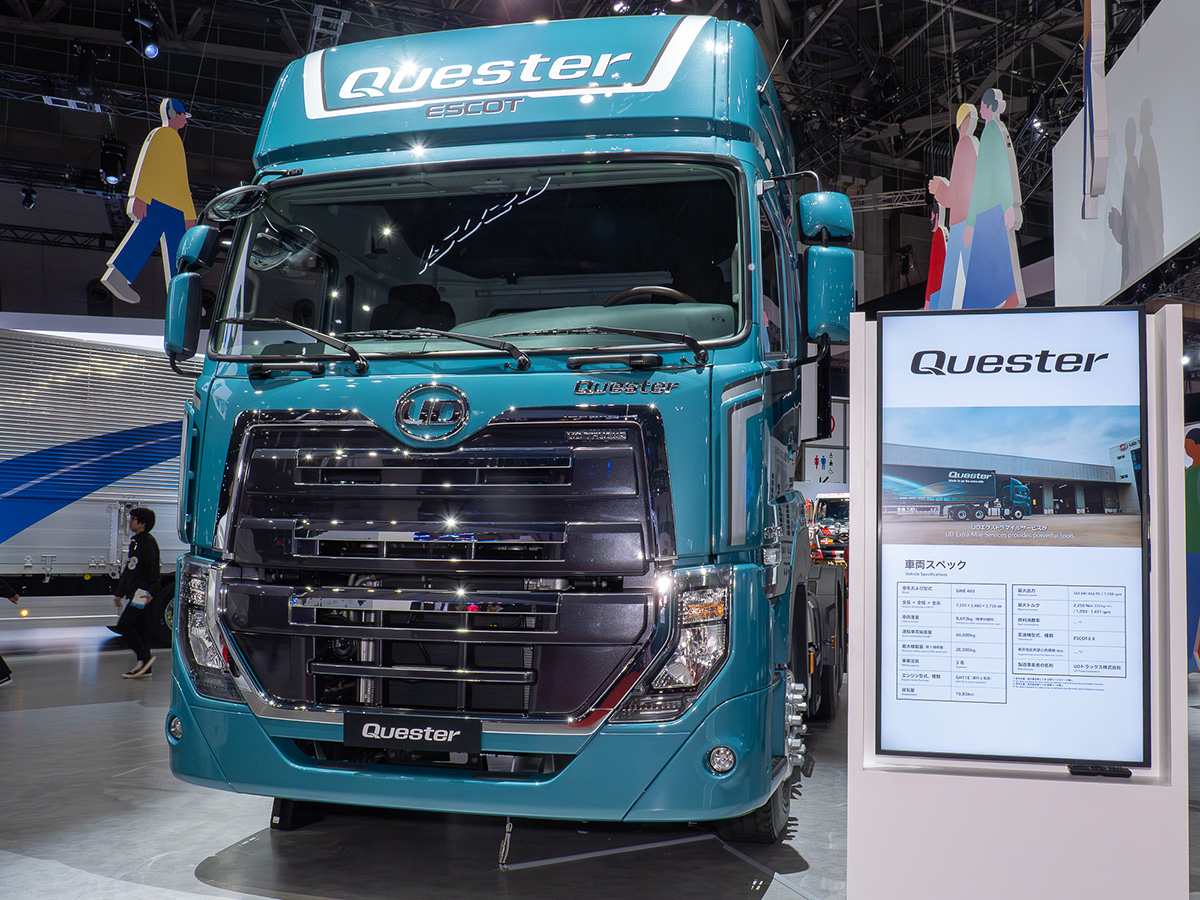 「JAPAN MOBILITY SHOW」となって、人気を集めているのが大型車の展示。もちろん、ビジネスベースで視察にいらっしゃる方も多いのですが、間近で大型車を見られる機会が貴重なため、一般のお客様にも大人気! 各社とも運転席を開放するなどして、一際人気を集めていました。