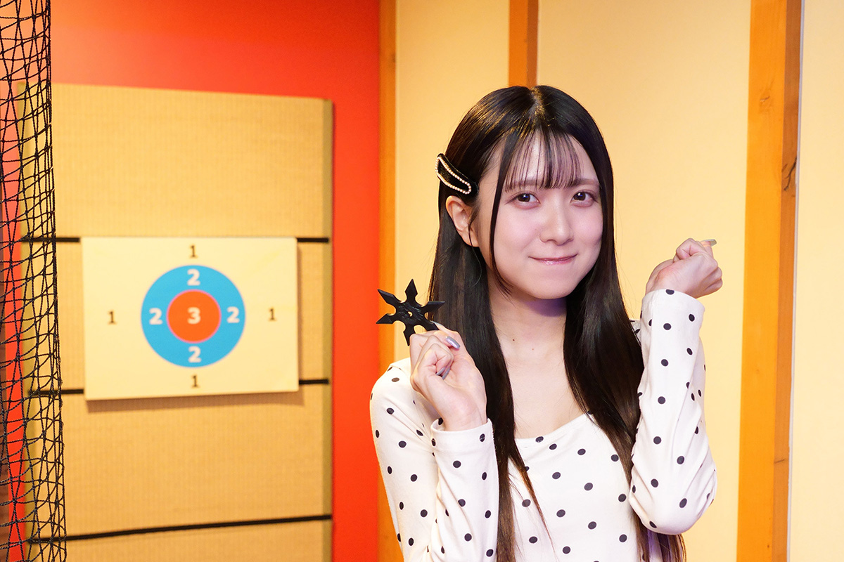 忍者といえば欠かせない「手裏剣体験」! チャンスは5回あるので、上忍(スタッフ)のアドバイスを聞いて挑戦を。