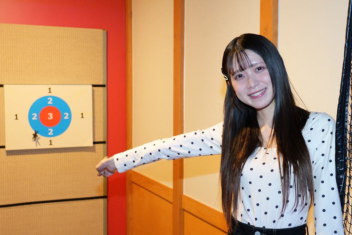 投げるときには手首のスナップを効かせて、手裏剣に回転をかけるように投げるのがしっかり刺すためのポイント!