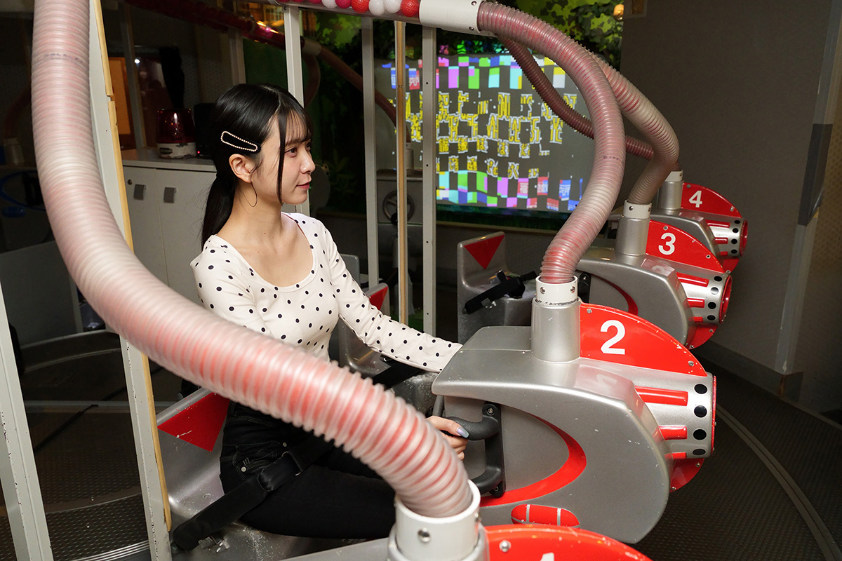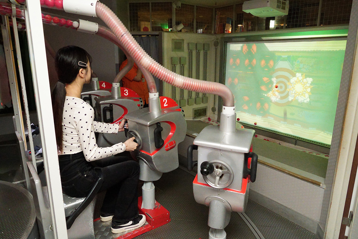 銃型の座席に搭乗してスクリーンに出現する敵を撃退する、アナログゲームとビデオゲームの両方の要素を持ったアトラクションが「福袋七丁目商店街」にある「未来遊戯ガンガンナー」です。座席は正方形型に4方向に向けて設置されており、4面あるスクリーンにはそれぞれ様々な敵が出現。座席のハンドルを回して弾を発射、敵を撃退します。4つのステージをクリアした後には、ボスステージが待ち受けています。みんなで協力してクリアを目指しましょう!