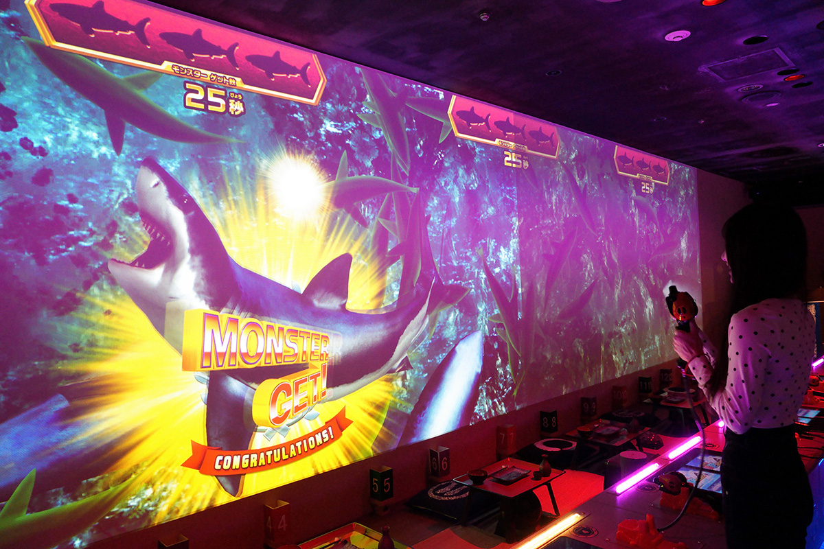 「ナジャヴの爆釣りスピリッツ」は、高さ2.7メートル、幅9.5メートルの超巨大なスクリーンに、釣り竿型のコントローラー(サオコン)を組み合わせ、リアルな操作で大迫力の大物釣りが楽しめるアトラクション。釣った魚の合計重量を競う個人戦の要素に加えて、参加者みんなで協力してモンスター魚を釣り上げ、スペシャルステージを目指す協力要素もあり。果たしてあなたは、スペシャルステージの“ゴールドモンスタークラス”の超大物を釣り上げることができるかな?