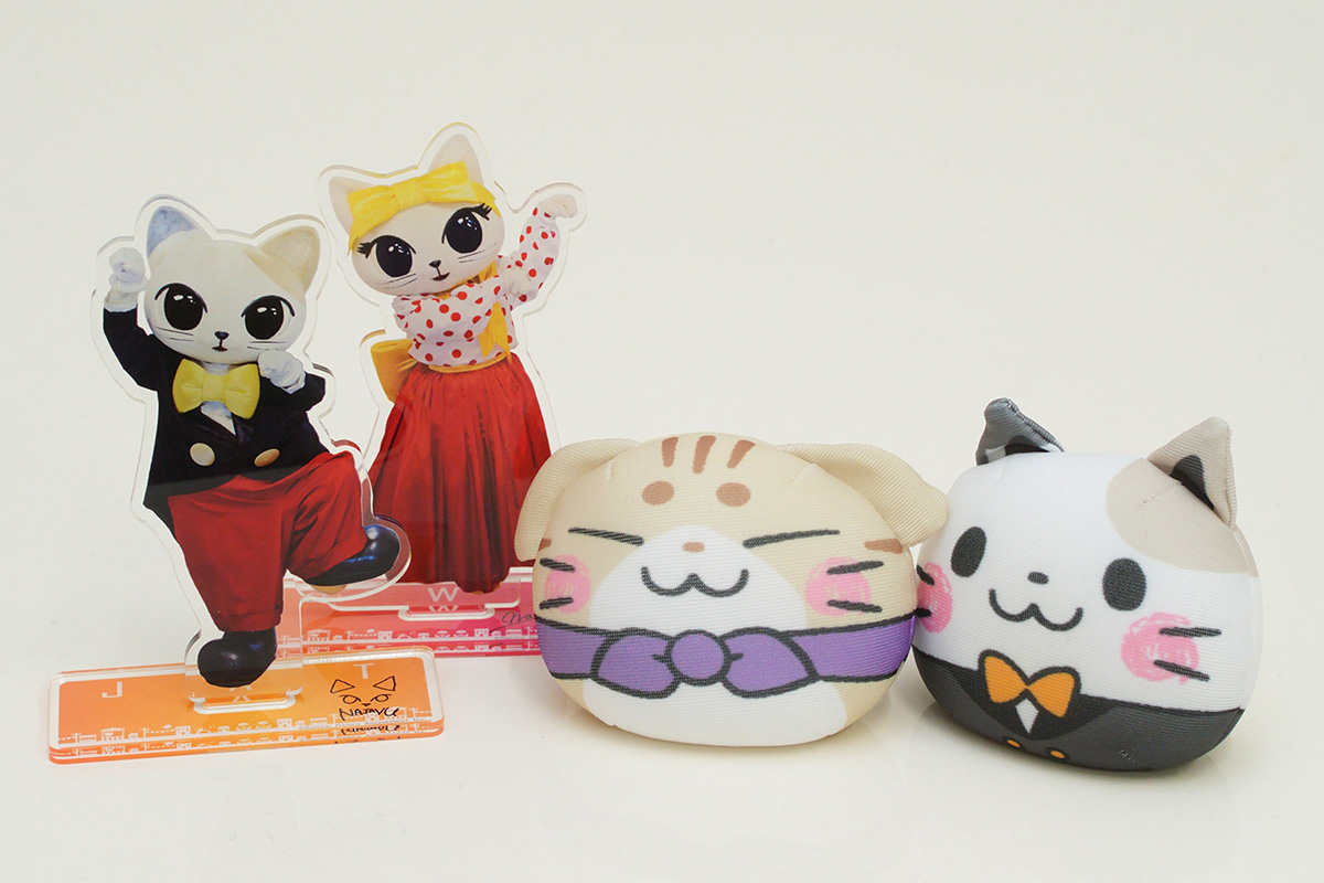 ナジャヴたちの「アクリルスタンド(各税込950円)」と「ねこ耳お手玉(各税込800円)」は、後ろ姿までかわいい!