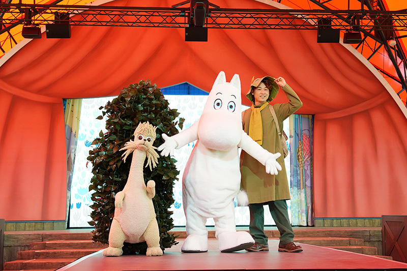 新しい「エンマの劇場」は、屋外劇場からテント型になったことで雨や日差しなどの天候の影響をカット。さらに舞台上に大型モニターを設置して音響・照明設備を一新して、より没入感の高いステージを行なえるようになりました。また、リニューアルを機にプログラム内容も一新され、「ショートストーリー ~春のしらべ~」やダンスパフォーマンス、小さなお子様向けのクイズにムーミン谷の仲間たちとのグリーティングを開催。パーク内での楽しみがより一層広がっています。