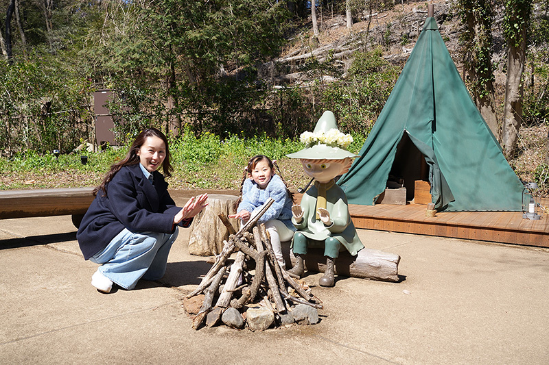 自由を愛するスナフキンのテントは、パークのはずれにあります。こうしたキャラクター像も、絶好の撮影スポット!