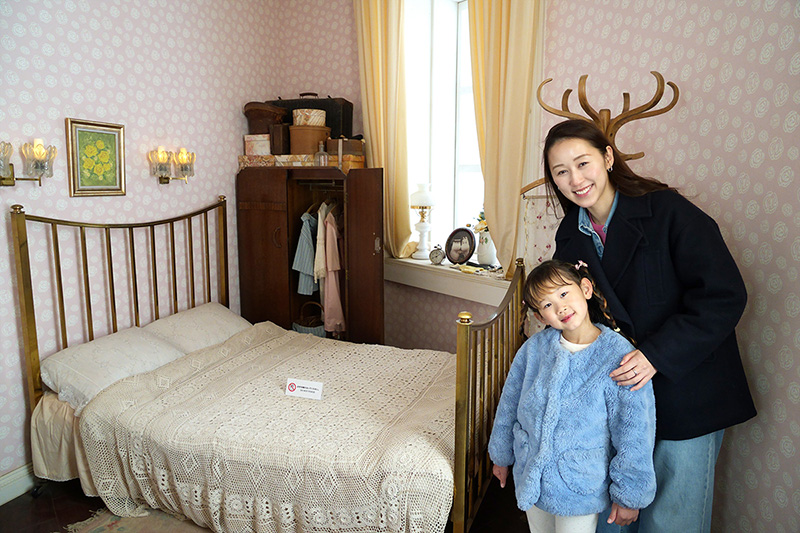 写真のムーミンのパパとママのお部屋をはじめ、生活感にあふれた屋敷内。室内の見どころをスタッフが解説してくれます。