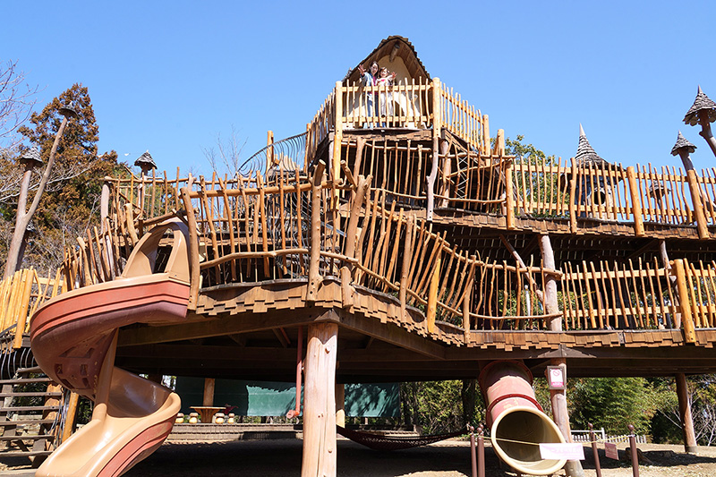 「おさびし山エリア」の緑豊かな立地を活かした「ヘムレンさんの遊園地」は、見ているだけでもワクワクしてしまうツリーハウスをはじめ、体を思い切り動かして遊べる遊具が集まったアスレチックパークとなっています。