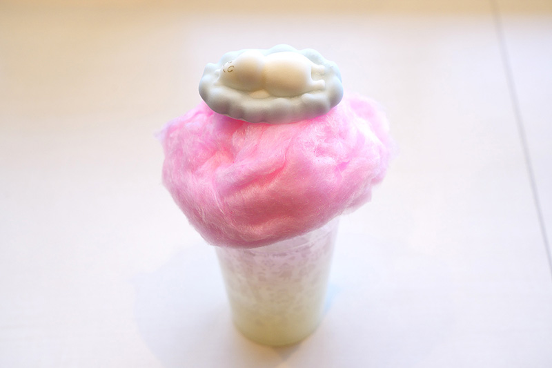 コットンキャンディの雲が浮かぶホワイトウォーターに、マシュマロのムーミンをトッピングしていただく「雲に乗れたら」(990円)。